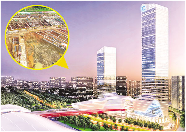 大图:凯达尔枢纽国际广场效果图。小图:施工现场。